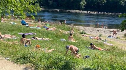Los ourensanos buscan refrescarse en las piscinas y en las orillas del Miño