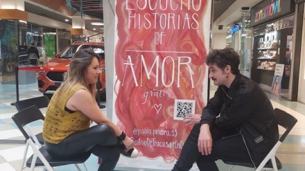 Pablo se sienta en la calle con un roll-up para "que me cuenten historias" y lo traslada a un espectáculo que este domingo tendrá lugar en el Teatro Principal de Ourense
