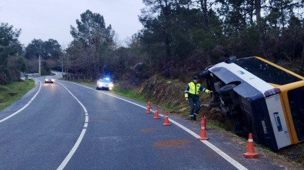 Un autobús escolar sin niños se sale de la vía en San Cibrao das Viñas (Ourense)