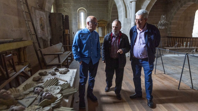 El presidente provincial, Manuel Baltar, se reunió hoy con el artista en el Monasterio de Santa María de Xunqueira de Espadanedo, donde Manzano ha participado recientemente en los trabajos de restauración del coro y donde también se puede visitar una exposición con piezas de su obra.
