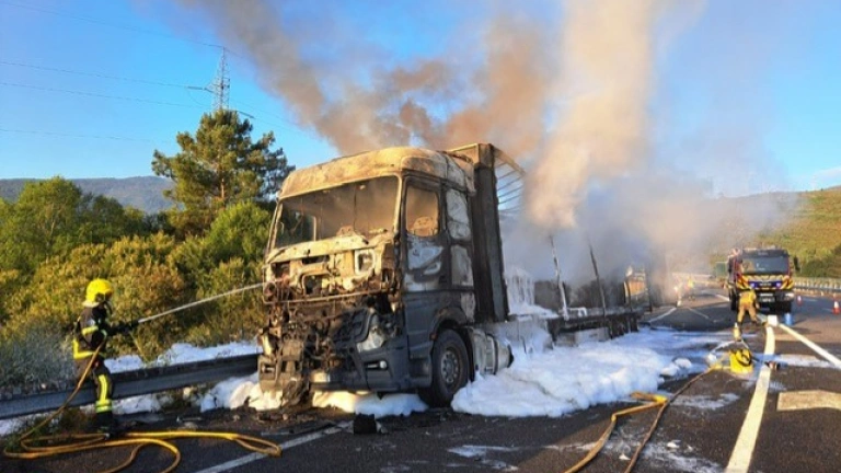 Un camión arde por completo de madrugada en el kilómetro 262 de la A-52 a su paso por el término municipal de Melón. Varios equipos de emergencias participan en las labores de extinción. De este incendio fueron informados también efectivos de incendios forestales para apoyar el trabajo de los bomberos y evitar más daños en el entorno.