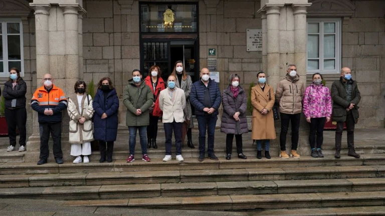 La entrada del Ayuntamiento de Ourense acogió este mediodía la celebración de una concentración silenciosa de cinco minutos en solidaridad con el pueblo ucraniano. El concello ourensano se sumó, asi, a la convocatoria realizada por la Federación Española de Municipios y Provincias. En el acto estuvieron presentes representantes de todos los municipales del Ayuntamiento de Ourense: Democracia Ourensana, Partido Popular, PSdeG-PSOE, Ciudadanos y BNG.