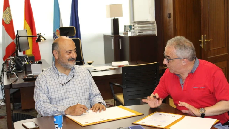 El presidente del organismo de cuenca, José Antonio Quiroga, y el alcalde de Muiños, Plácido Alvarez, firmaron un convenio de colaboración