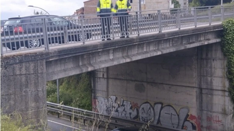 Dos guardias civiles salvan la vida a una mujer de 44 años en Ourense. Una patrulla del Destacamento de Tráfico de la Guardia Civil vigilaba la N-525 a su paso por O Piñeiral y observó cómo en el puente que cruza la vía había una mujer que sorteaba la barandilla y se colocaba en el exterior de la misma con actitud peligrosa.