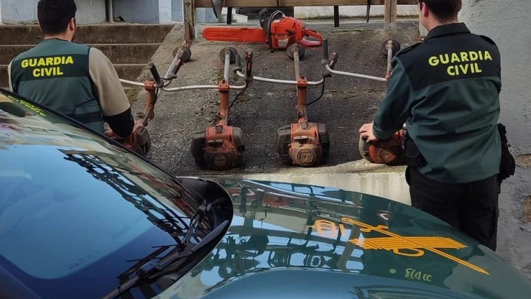 La Guardia Civil encontró las desbrozadoras, motosierras y otras herramientas escondidas en un bosque