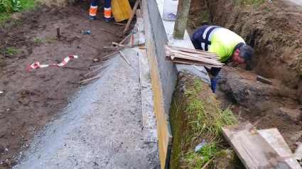 Las brigadas del Ayuntamiento de Ourense reconstruyen un muro de contención en Zaín dañado por los temporales