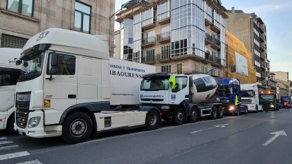 Varias decenas de cabezas tractoras de camiones protagonizaron esta tarde una marcha lenta por el centro de la ciudad de Ourense. Entraron por el Puente del Milenio y, haciendo sonar las bocinas durante todo el trayecto, llegaron hasta la Alameda, donde comenzaron a estacionar ocupando, desde allí, un buen tramo de la calle Progreso, una de las principales arterias de la ciudad.