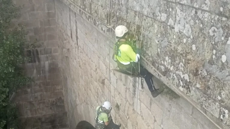 Se trata de labores de limpieza manual de vegetación y maleza que se llevan a cabo sin perforaciones para mejorar la imagen de uno de los símbolos de la ciudad de As Burgas