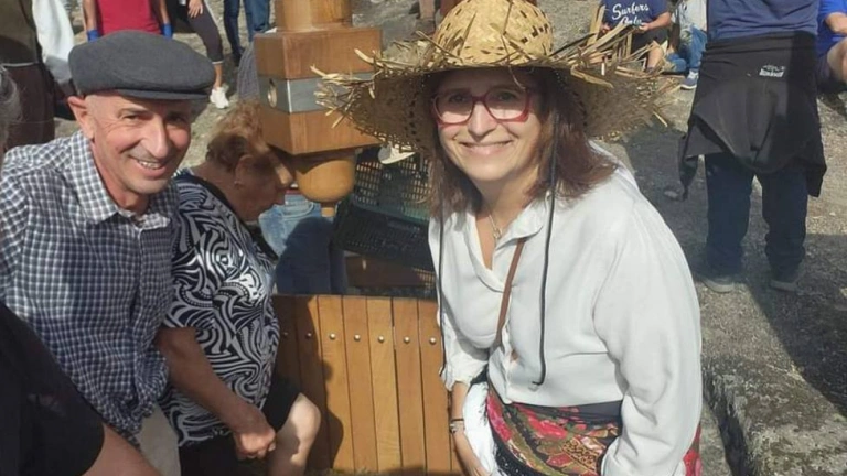 La alcaldesa de Oímbra pisando uvas en la edición del año pasado