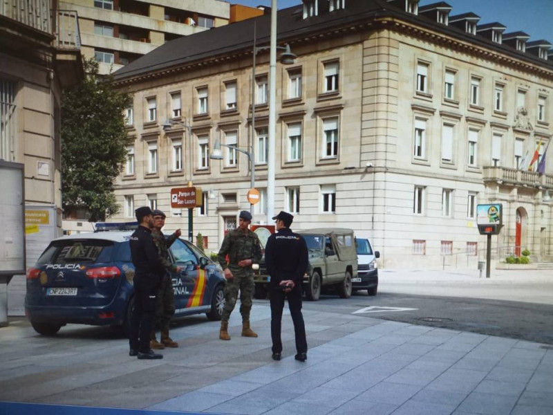 Los militares se desplegaron por las calles de la zona centro de la ciudad de As Burgas y los lugares susceptibles de concentración de personas, con el objetivo de concienciar a la población y detectar si se incumplen las prohibiciones establecidas.