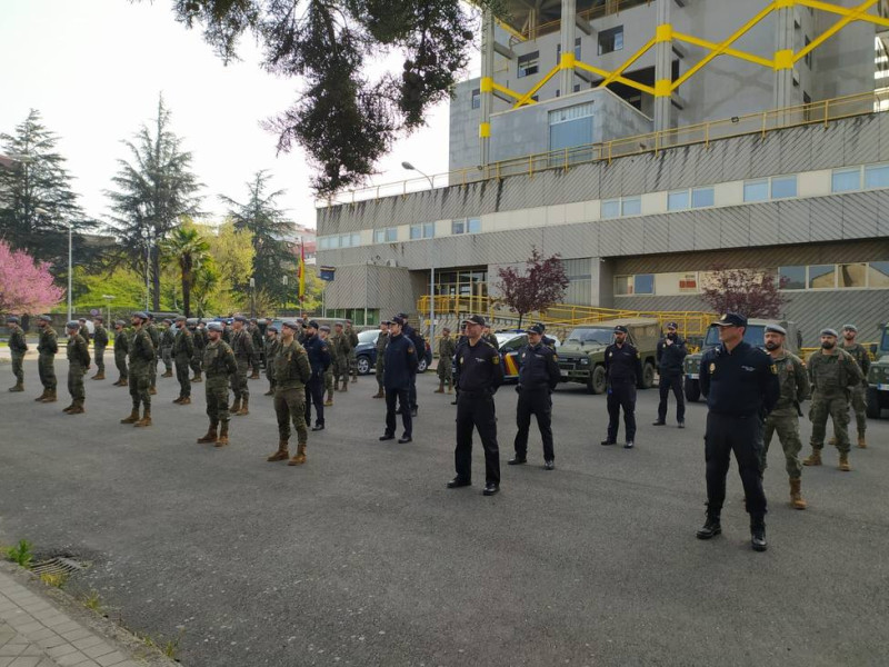 Esta mañana llegaron a Ourense los efectivos militares de la Brilat de Pontevedra para trabajar en colaboración con la Policía Nacional y la Policía Local en las labores de seguridad ciudadana para el control del cumplimiento de las medidas puestas en marcha para frenar la expansión del coronavirus.