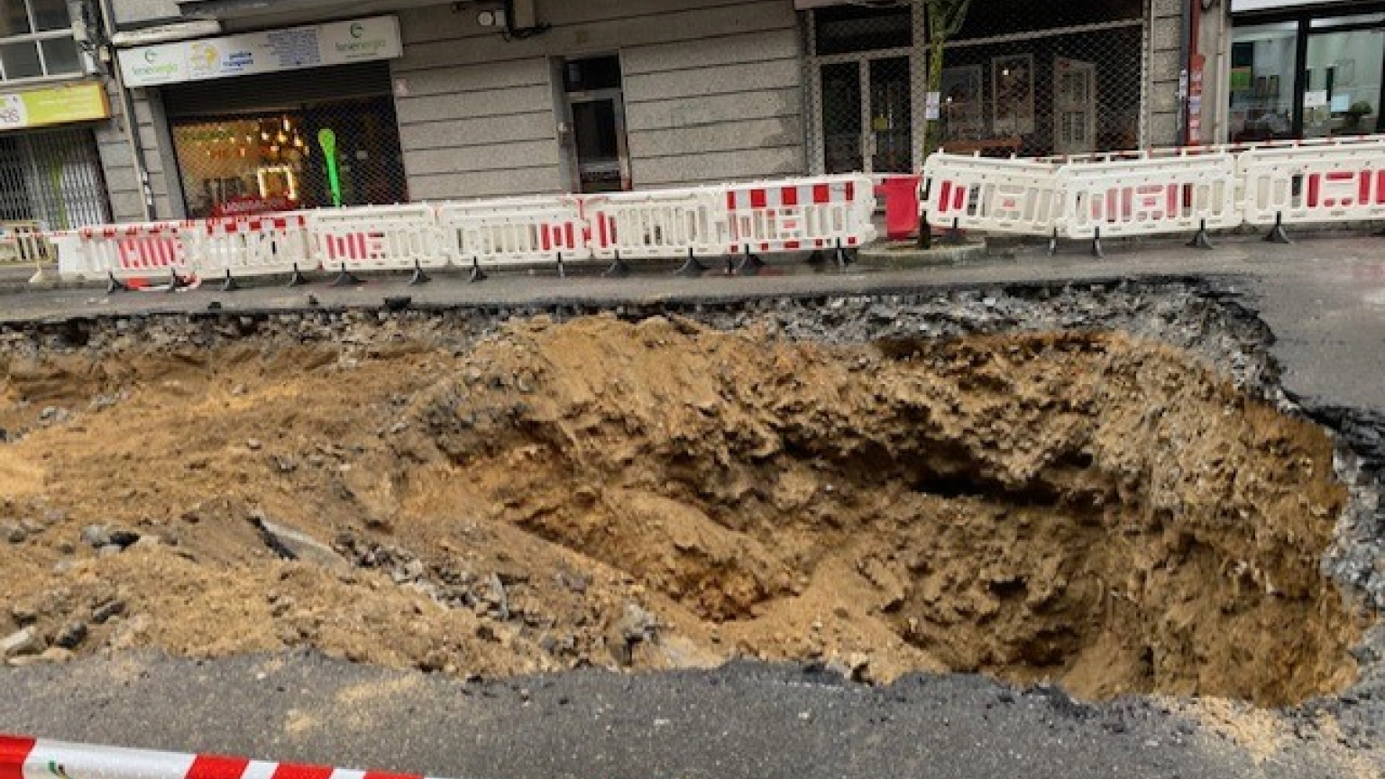 Preocupación de los vecinos de la calle Pena Trevinca en Ourense tras el socavón por si afecta a la cimentación de garajes y algunas edificaciones