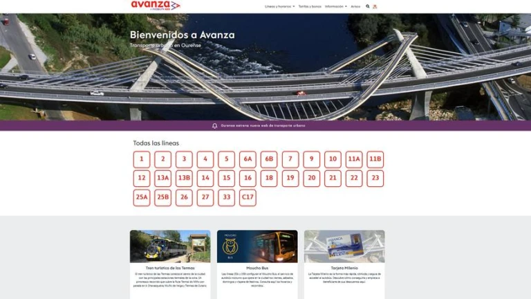 A la nueva nueva web se puede acceder a través de la dirección electrónica ourense.avanzagrupo.com, donde los usuarios encontrarán “de forma clara y sencilla” toda la información sobre las líneas de autobuses que recorren la ciudad, con la descripción de su origen y destino, así como un acceso directo a la información de cada una de ellas. También la posibilidad de consultar las diferentes paradas y sus horarios e incluso descargar esta información en formato PDF, como explicó la gerente de Relación con el Cliente del grupo Avanza, Belén Fernández, quien precisó que “la nueva web está pensada por y para los usuarios, y está confeccionada a través de lo que ellos entienden que necesitan o que les parece de interés”.
