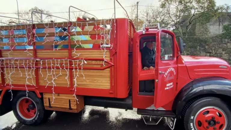 Su camión rojo engalanado para la ocasión lleva la ilusión de los niños desde hace más de 20 años en la Cabalgata de Reyes en la ciudad de As Burgas