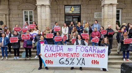 Las trabajadoras del servicio de ayuda en el hogar han iniciado una huelga indefinida convocada, a nivel autonómico y en solitario, por el sindicato CIG-servicios. Medio centenar de estas trabajadoras se concentraban esta mañana a las puertas del Ayuntamiento de Ourense.