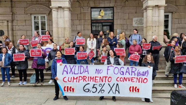 En Ourense son casi 200 las trabajadoras del servicio de "Axuda no fogar". Su salario base es de 1.046 euros y, con la convocatoria de esta huelga, la CIG pretende "hacer presión para que UGT y CC.OO no firmen ese convenio".