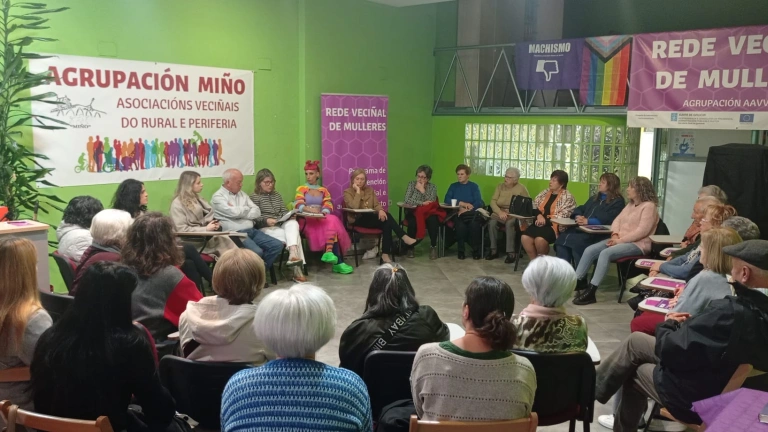 La Agrupación Miño de Ourense acoge un encuentro vecinal sobre la violencia machista. Se trata de la segunda edición de una iniciativa que pretende visibilizar y concienciar sobre la importancia del movimiento vecinal en la detección y reacción frente a las violencias machistas. En la jornada participaron una agente de protección en la UFAM (Unidad de Familia y Mujer) de la Policía Nacional de Ourense, Eva Rodríguez; la Jefa de la Unidad contra la violencia sobre la mujer en la Subdelegación del Gobierno, María Alida Iglesias; la concejala de Igualdad, Noa Rouco; y técnica de la Red Vecinal de Mujeres, Antía Pousa.