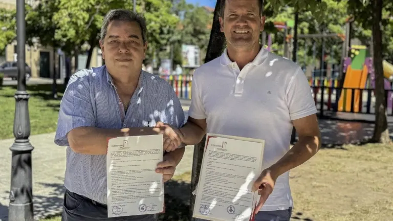 El presidente del Consello Regulador de la Denominación de Origen Monterrei, Jonatás Gago, y el alcalde de Verín, Gerardo Seoane, ratificaron un convenio de colaboración entre las dos entidades para la organización de la XVII Feira do Viño de Monterrei, que se celebrará del 9 al 11 de agosto.