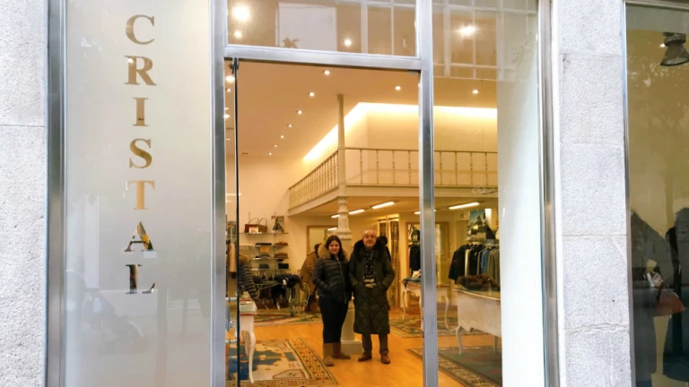 Desde Cristal, en la calle Rosalía de Pontevedra, Perfecto Rodríguez enumera los importantes descuentos que ofrece la tienda de moda femenina en marcas de primer nivel.