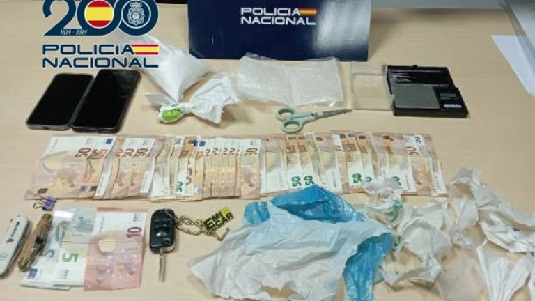 En el registro efectuado en el vehículo del detenido, estacionado en las inmediaciones, los agentes localizaron 230 gramos de cocaína ocultos entre sus pertenencias, 1.800 euros en efectivo y una balanza de precisión, material vinculado a la distribución de droga.