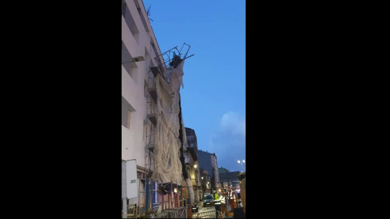 Vecinos de Pontevedra, encerrados en casa por el riesgo de caída de un andamio