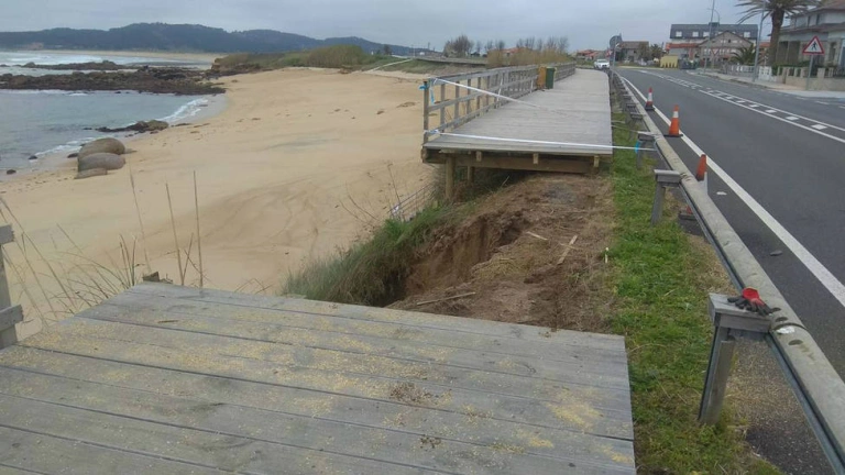 La Xunta de Galicia iniciará este jueves los trabajos en el tramo dañado en el municipio de Sanxenxo. En primer lugar, se retirará el material de arrastre y, a continuación, se cimentará el muro de piedra que sostiene los tablones.