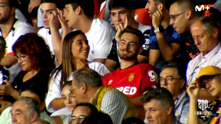 Presión es lo que tenía Lluís Munar y no los futbolistas. Con su camiseta del Mallorca en Mestalla junto a su novia valencianista y los padres de su novia, también valencianistas.