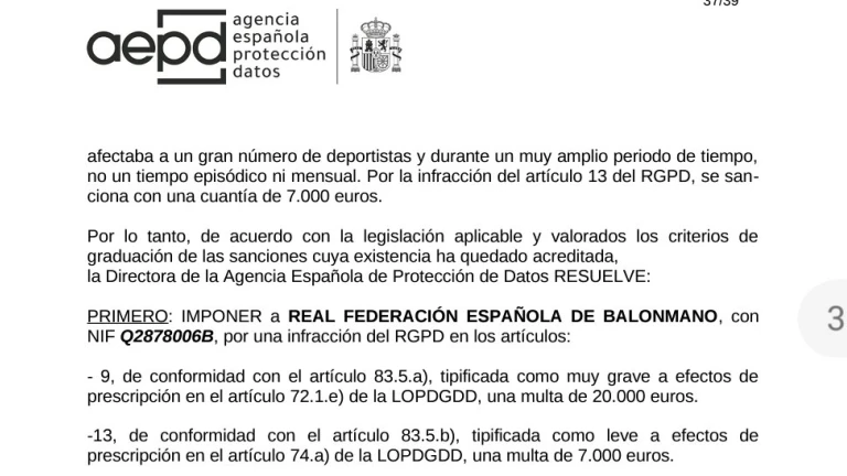 Analizamos la multa que ha recibido la Federación Española de Balonmano por parte de la Agencia Española de Protección de Datos por haber solicitado el certificado covid en un campeonato de selecciones autonómicas.