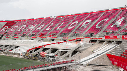 Las obras en el estadio ya muestran un gran cambio con la nueva tribuna este que ya presenta los nuevos asientos de la parte alta y la baja que se acerca más al campo.