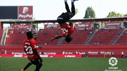 El centrocampista celebraba su primer gol con el Mallorca con una acción gimnástica pero finalmente no se le ha adjudicado a él sino a Ángel