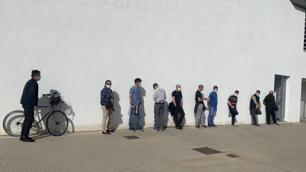 Colas esta mañana el Palau de Son Moix de socios para recoger su entrada para el encuentro ante el Levante