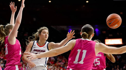 La mallorquina se muestra exultante antes de afrontar la Final a 4 de la liga universitaria, NCAA, con Arizona Wildcats junto a otra española, Marta García.