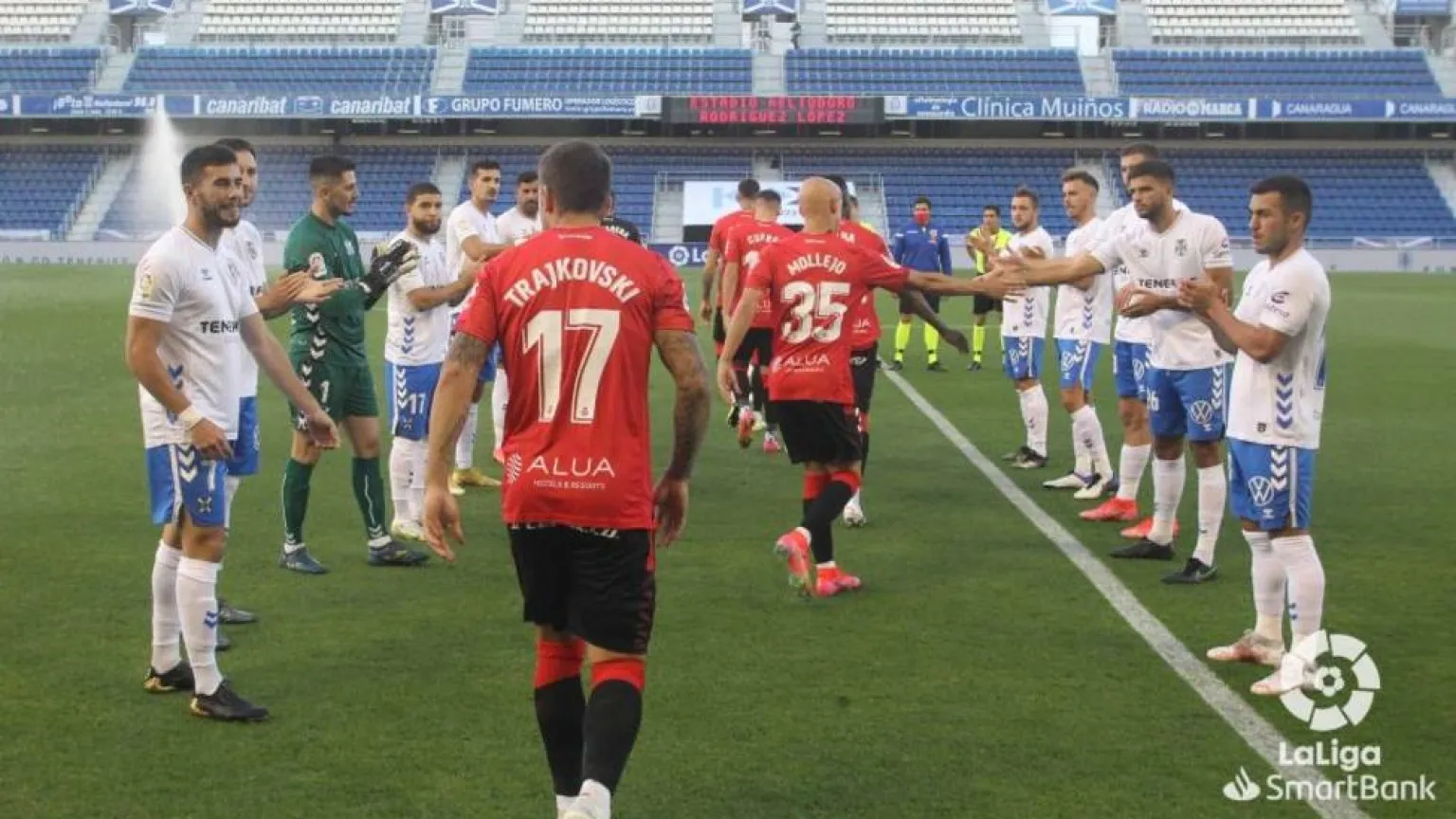 No es el campeón (aún puede serlo a falta de dos jornadas para el final) pero el CD Tenerife quiso homenajear el ascenso del RCD Mallorca con un bonito gesto. El equipo chicharrero hizo el pasillo al RCD Mallorca a la salida al Heliodoro Rodríguez López en homenaje al ascenso.