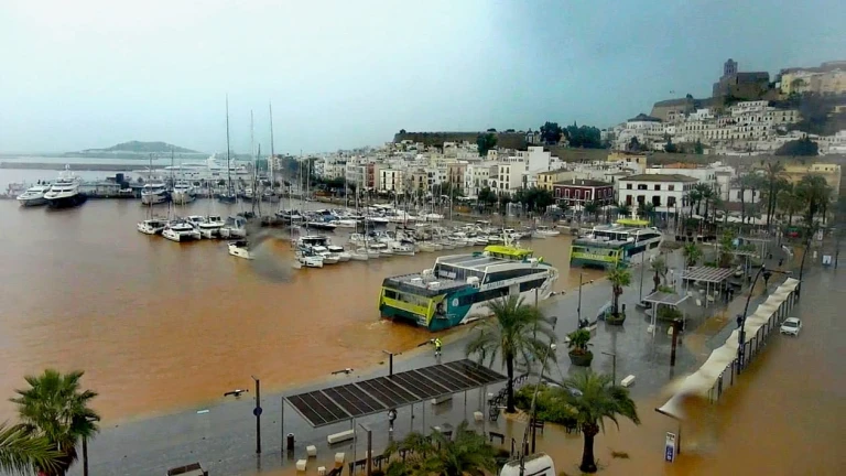Los azules de Ibiza se convirtieron en marrón, ese marrón inconfundible del agua abundante bañando la tierra y también el propio mar, como podía verse este martes, ese mar que llega hasta el corazón de Vila.