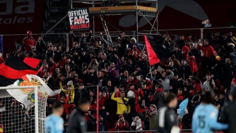 La afición del Mallorca, celebrando la victoria ante el Celta de Vigo