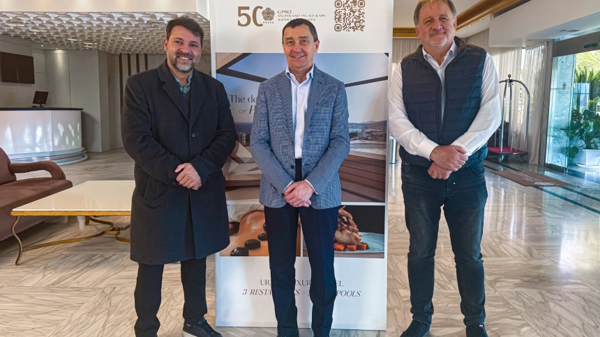 José Tirado junto al director del Hotel Gpro Valparaíso Toni Ferrer y Bernat Bauzçà de la Fundació