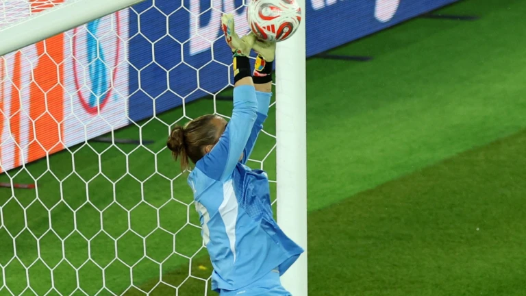 Estaba a punto de completarse los cuatro minutos de descuento cuanto un balón envenenado iba hacia la escuadra izquierda de la portería, Cata Coll llegaba a tiempo para rechazar, con la inercia de la carrera se iba hacia atrás y llegaba a tocar la red, con la que incluso hubiera podido enredarse, no fue así y la velocidad de reacción le hizo colocarse de nuevo en posición esperando el segundo remate en este caso de la alemana Wamser que toda Alemania vio dentro. Pero Coll rechazaba con las piernas convirtiéndose en la heroína y felicitada efusivamente por sus compañeras.