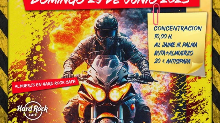 A las 11:00 h, arrancará la ruta motera, que este año recorrerá un espectacular trazado por algunos de los paisajes más emblemáticos de la isla: Palma- Llucmajor- Porreres - Montuiri - Algaida y regreso a Palma, con final en el icónico Hard Rock Café del Paseo Marítimo. Allí, quienes hayan adquirido su ticket con almuerzo podrán disfrutar de una comida especial y del potente directo de la artista Alejandra Burgos, que ofrecerá un show lleno de energía. Además, entre todos los participantes se sorteará un exclusivo pack de Segunda Rueda.