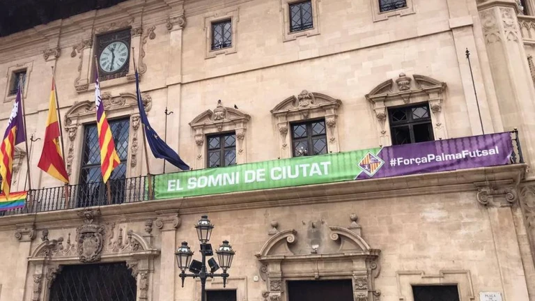 Palma luce orgullosa el verde pistacho del Palma Futsal en su gran fortaleza y además muestra el apoyo de la ciudad hacia su equipo en su primera final de liga. El Ayuntamiento de Palma ha colgado una lona alusiva a la final del sábado en Son Moix en su fachada.En la lona se puede leer "el sueño de la ciudad, fuerza Palma Futsal".