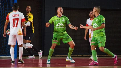 Los jugadores del Palma Futsal, celebrando un gol en Santa Coloma