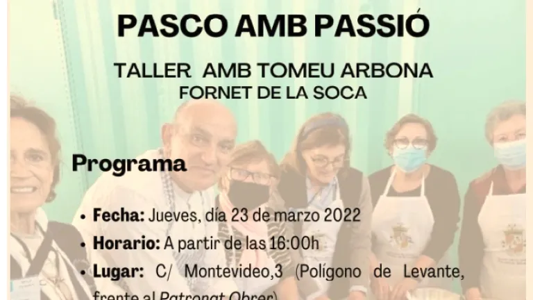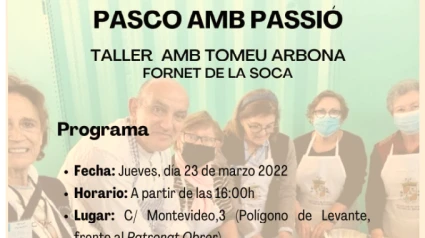 Este jueves a las 4 de la tarde en la calle Montevideo, N3, en el polígono de levante, tiene lugar el taller Pasco amb Passió con Tomeu Arbona, del Fornet de sa Coca.