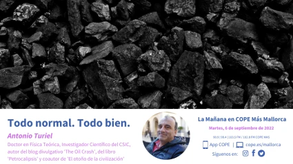 Todo normal, todo bien con Antonio Turiel en La Mañana en COPE Más Mallorca. Antonio Turiel es Doctor en Física Teórica, Investigador Científico del CSIC, autor del blog divulgativo 'The Oil Crash', del libro 'Petrocalipsis' y coautor de 'El otoño de la civilización'.