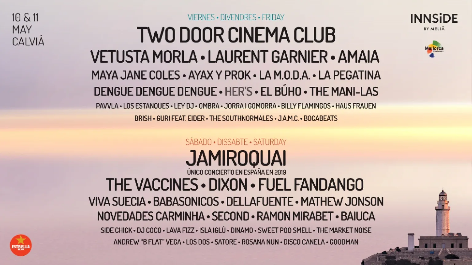 El viernes 10 de mayo será el día de Two Door Cinema Club, Vetusta Morla, Laurent Garnier, Amaia, La M.O.D.A., Maya Jane Coles, Ayax y Prok y La Pegatina, entre otros; mientras que el sábado 11 de mayo Jamiroquai dará su único concierto en España este año junto a The Vaccines, Dixon, Fuel Fandango, Viva Suecia, Babasónicos, Dellafuente y Mathew Jonson, por citar algunos nombres.