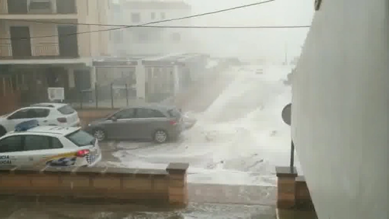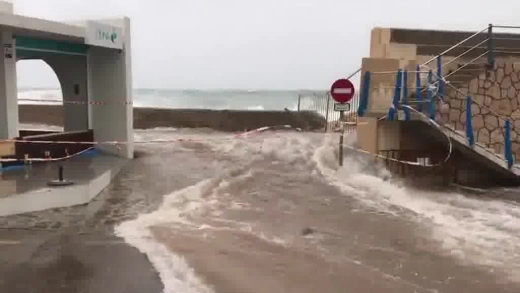 Las olas están invadiendo también el paseo marítimo aunque parece que a los más curiosos les da igual. Explica Nadal que la Policía está desalojando a mucha gente que se acerca a hacer fotos sin ser conscientes del peligro que eso conlleva. La playa de S'Illot, que resultó ya muy afectada tras la torrentada de Sant LLorenç, ha desaparecido y las olas estan llegando a segunda línea. Los Bomberos vigilan una plataforma metálica de 20 metros está a punto de caer de un hotel de la zona.
