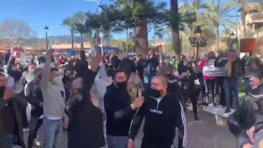 Cientos de trabajadores y empresarios del sector de la restauración de Mallorca se han saltado la prohibición de la Delegación del Gobierno para manifestarse frente al Consolat de Mar y exigir la dimisión de la presidenta del Govern, Francina Armengol, por el cierre de sus negocios para prevenir la covid-19. Una concentración que se ha convertido en manifestación ya que después de la protesta ante la sede de Presidencia se ha trasladado al Parlament y al Ayuntamiento de Palma. Se han producido cortes de tráfico en varios puntos de la ciudad.