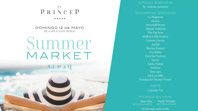 HOTEL ES PRINCEP celebra la II edición de ES PRINCEP STORIES este fin de semana. El próximo domingo, 12 de mayo, la terraza panorámica del hotel se llenará de tiendas al aire libre, música en directo y la mejor gastronomía. El evento comenzará a las 11 de la mañana y acabará pasada la puesta de sol. Esta nueva edición se ha bautizado como SUMMER MARKET y está dedicada al verano que está ya a la vuelta de la esquina.