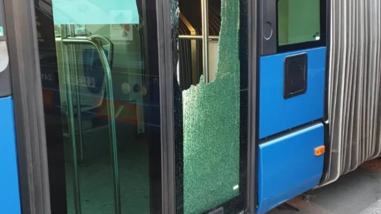 El ataque más grave se produjo cuando desde un vehículo en circulación se han lanzado piedras contra uno de los buses asignados rompiendo los cristales de la puerta trasera.
