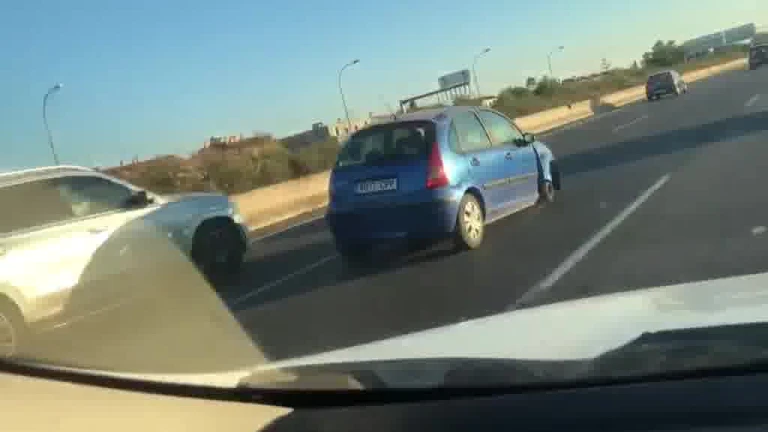 Este es el vídeo que en pocas horas se ha hecho viral y en el que se ve a un conductor que circulaba por la autopista de Inca, a la altura del Alcampo, sin la rueda delantera. El choque de la llanta con el suelo ha provocado un fuerte ruido que ha llamado la atención de otros conductores, que han terminado grabado lo sucedido.