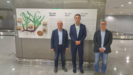 Exposición sobre la posidonia en la terminal de llegadas del aeropuerto de Menorca