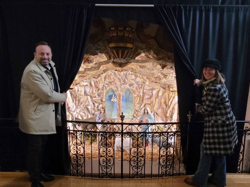 El alcalde de Alaior, José Luis Benejam, y la concejala de Fiestas, Eva Petrus, han revelado todo el conjunto de figuras que representan la venida de Cristo al mundo, como la Virgen María, San José, la mula y el toro.